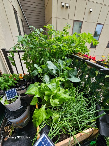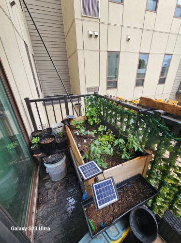 One update from last year: I’ve added a third solar-powered watering system. This one is dedicated to the flowers and herbs on the left side of the table, which should help everything thrive with a little less effort on my part.