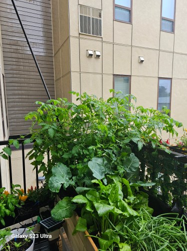 My original plans for the balcony garden didn’t quite go as expected, but I’m still excited to watch it grow and evolve. Here’s my current garden layout: